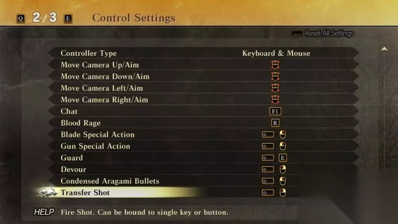 键位操作 WASD键:移动; 空格键:跳跃; 鼠标左键:攻击/射击; 鼠标右键:攻击/射击; shift键:切换武器模式/奔跑; E键:拾获/救治/躲避; tab键:显示道具/命令; Q键:重置镜头/锁定目标; 移动鼠标:瞄准/移动镜头; F1键:语音对话; R键:血怒; shift键+鼠标左键:剑特殊攻击; shift键+鼠标左键:枪特殊攻击; shift键+E键:防御; shift键+鼠标右键:吞噬; shift键+鼠标左键:浓缩荒神子弹; shift键+鼠标右键:变形射击;