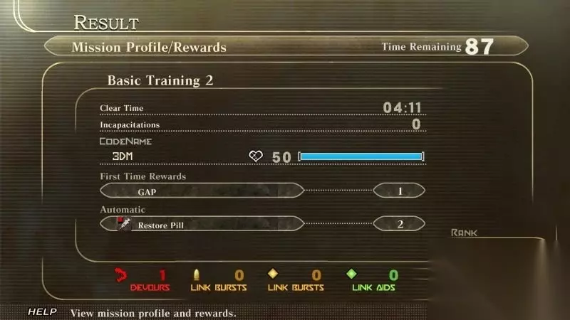 此部分内容仍在补充中 主线攻略 导读:游戏是以“难度”为章节的名称,譬如第一章,游戏以“难度一”来命名,因此笔者亦照这官方说法,按“难度一”、“难度二”来划分主线每一章节。 难度一:任务01-基础训练1 前言:时间为西历2074年,也就是前作3年后,世界依然在谜之生物“荒神”的威胁之下。作为芬里尔本部直属研究机关“夫莱亚”所属的特殊部队“BLOOD”的一员,你来到了极东地域。 在这里,因为最近开始下的谜之血雨而产生了狂暴化的“感应型荒神”,另外,这里的人们染上了一种不治之病…“黑蛛病”。 在这个被荒神蹂躏的世界,为了守护人们的幸福而战斗的兵士们,他们各自的选择将会带来什么样的命运?在这个没有神的世界,没有终结的战斗再次打响了。