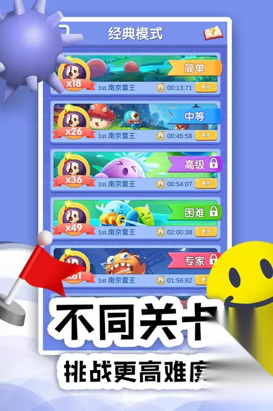 玩家需要在疾驰的列车间穿梭,灵活跳跃、滑行,避开迎面而来的障碍,同时收集金币和道具,提升跑酷能力。游戏画面色彩鲜明,每座城市的主题场景都经过精心设计,从巴黎的浪漫街头到东京的霓虹轨道,带来丰富的视觉体验。角色个性鲜明,不同的服饰与滑板组合让跑酷之旅更加独特。 扫码下载该游戏 高速下载 普通下载 优先233乐园APP下载 3、《扫雷online》