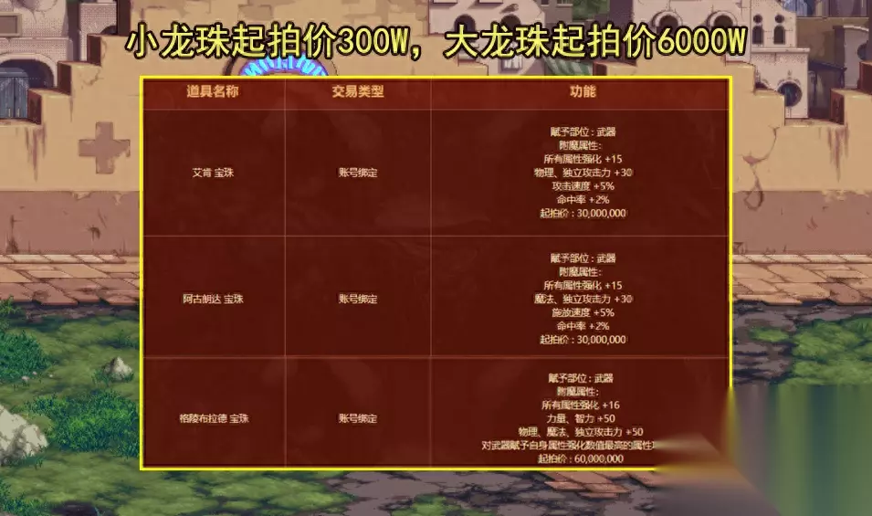 第二个让玩家在意的地方是巴卡尔添加的大小龙珠的起拍价,其中艾肯和阿古郎达的起拍价和奥兹玛加入的一样,都是3000万,大龙珠则贵一些,是小龙珠价格的2倍,需要花费6000万金币。 至于翻到概率,策划在活动栏中并没有说明,所以大家不要抱有太大的期待,如果是照搬奥兹玛概率,刷1000把才能遇到一次,大龙珠就更不用说了,到9.21结束前估计大把玩家都遇不到。 2大地方现良心改动