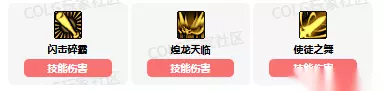 技能进化加点 35级【流星闪影击】加点:天穹轰击 施放时间减少 60级【闪击碎霸】加点:终极女皇 消耗9个炫纹向前发射,根据消耗的炫纹数量来增加爆炸范围,伤害减免,冷却变为60S,攻击力增加 70级【煌龙天临】加点:煌龙再临 填充2次,每次25S,可移动位置,范围增加 75级【炫纹簇】加点:炫纹大爆炸 生成1个炫纹簇,变为单次攻击,可以在其他动作中施放,范围增加 80级【使徒之舞】加点:歼灭之舞 删除部分攻击,消耗炫纹攻击,范围增加,刺击未命中则直接爆炸 技能强化 1、闪击碎霸:技能伤害 2、煌龙天临:技能伤害 3、使徒之舞:技能伤害