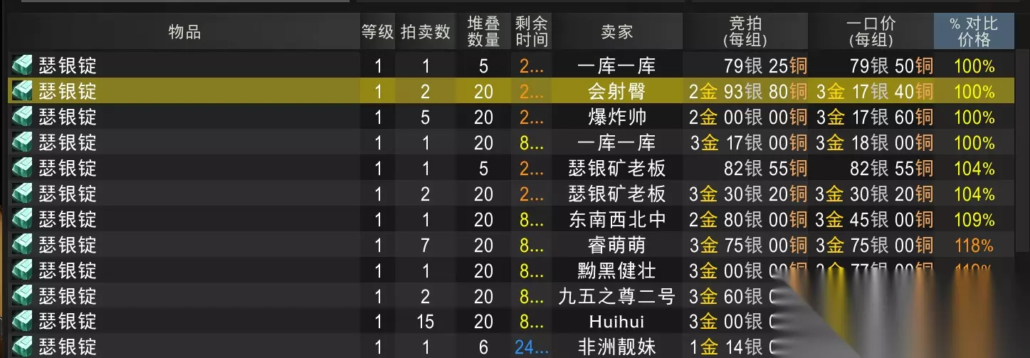 瑟银零件 需要做360个瑟银零件,也就是54组瑟银锭+18组符文布,价格