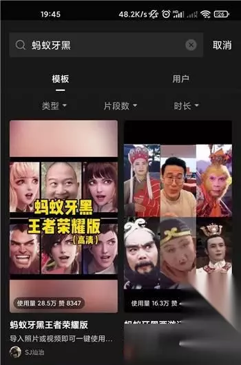 5、随后等待视频保存,保存到手机本地相册中,便于后续使用该素材; 6、最后打开手机上的【剪映】app,点击搜索框搜索【蚂蚁牙黑】;