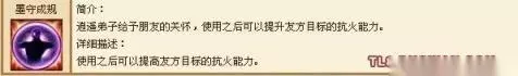 逍遥弟子给予朋友的关怀,使用之后可以提升友方目标的抗火能力。 详细描述: 使用之后可以提高友方目标的抗火能力。 正如介绍的那样,在3孔时代是很给力的抗性技能之一, 就是因为这个技能,大家都说那时候的逍遥专门克制明教