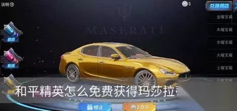 在和平精英中,拥有玛萨拉蒂皮肤就是身份的象征,尤其是最为珍贵的金色,最能彰显身份。那么怎么免费获得玛萨拉蒂皮肤呢?不想花钱的小伙伴跟着小编一起来了解下吧!