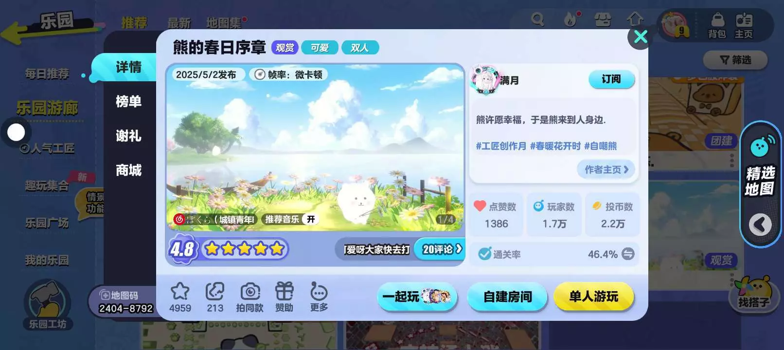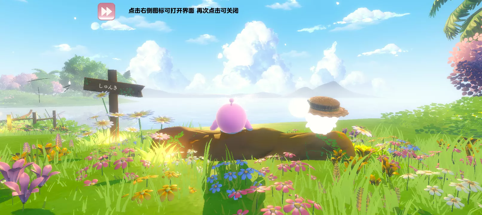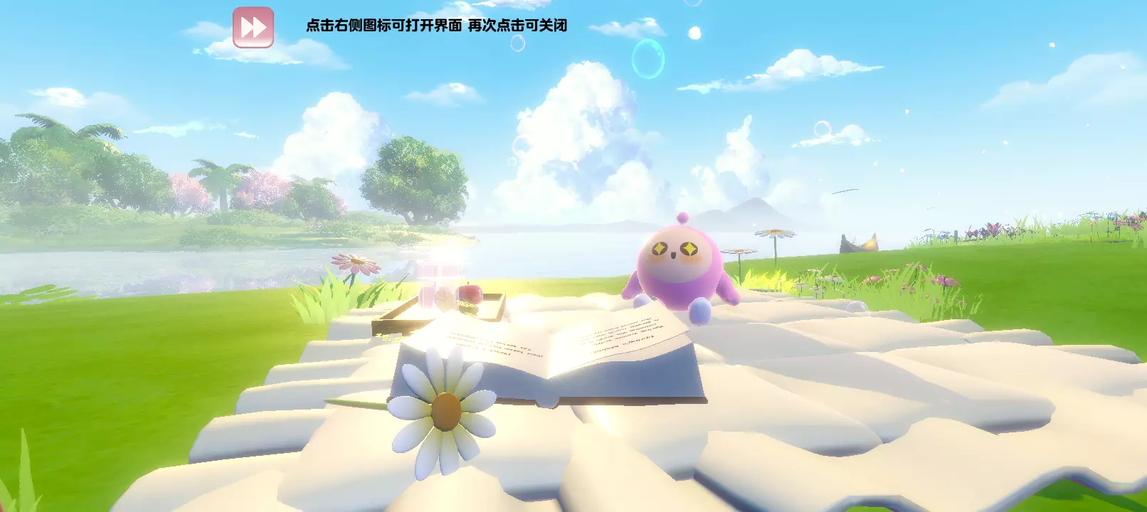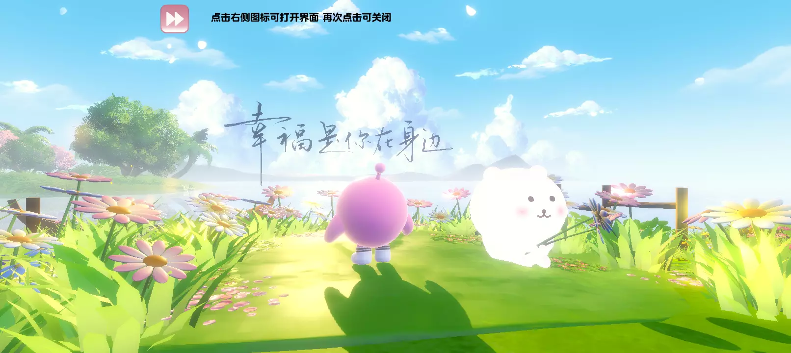 春风十里,地图画质很温柔阳光充足,肆意生长的野花在这一刻被孕育了生命,而面前是一个巨大的湖像一张大镜子阳光照下波光粼粼的,身旁还有一只可可爱爱的自嘲熊。