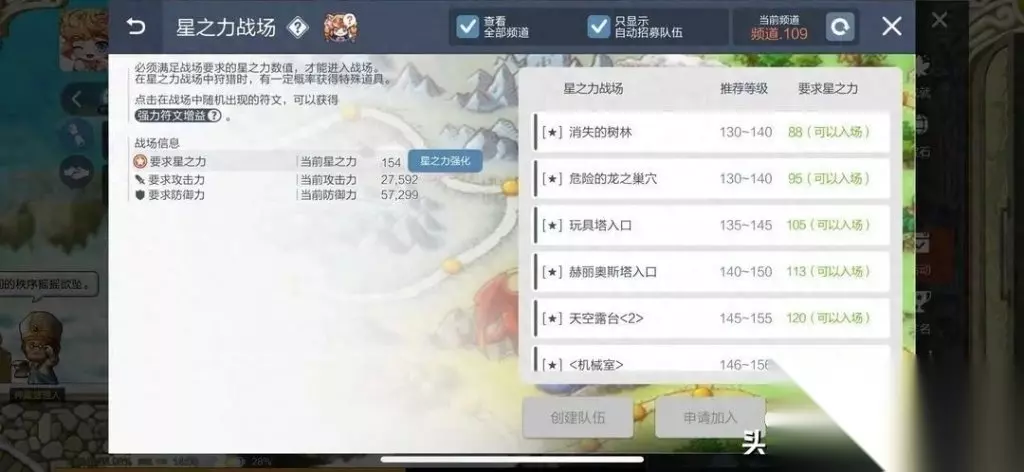 80级以上其实就可以进远征,因为挂星之力战场升级比较快,建议尽量高级后,在晚上20:00-21:00之间去参加,因为这个时间段打远征的人多,混野队也能轻松过关,而且等级高了能去的远征关卡也多些。 打远征最重要的就是收集装备图纸碎片(也有一定概率出装备、饰品、家具箱等),不想氪金的小伙伴一定要坚持每天打哟! 升级也就是强化装备加挂机了,周末下午的加经验时间不要错过,挂进星之力战场轻松升级。