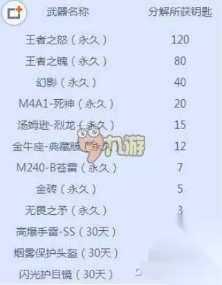 武器分解表: