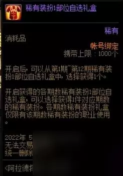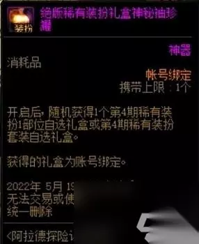 圣者遗物箱中也有机会获得稀有装扮,S级道具中有10%的概率获取稀有装扮兑换券,SS级道具中有20%的概率获取1~12期稀有装扮套装自选礼盒。