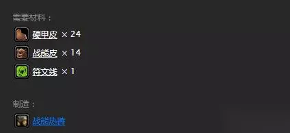 在游戏《魔兽世界怀旧服》中,战熊热裤的获得方法是在玩家拥有图纸后用24个硬甲皮、14个战熊皮和1个符文线即可制造,需要玩家拥有285点制皮能力。战熊热裤图纸的获得方法是玩家在击杀扭木摧毁者、卡扎克、火妖医师、死木萨满祭司和死木守卫时都有极低的概率掉落图纸。