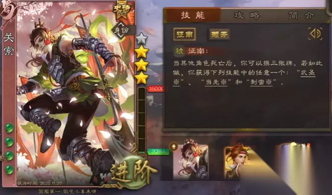 三国杀蜀国将魂史诗武将换哪个 1、关索:售价4500浆糊,号称军八“食尸鬼”,拿到AK就能轻松七杀,喜欢玩军八的将军可以去合成。