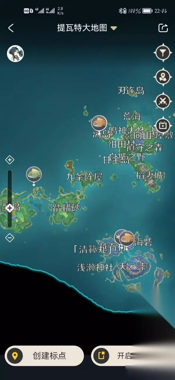 3.稻妻 钓鱼点位有离岛、董色之庭秘境小岛、雷元素最密集小岛、名椎滩、珊瑚宫、水月池、越石村七天神像处、越石村七天神像右侧传送锚点处、千来神祠、逢岳之野左侧小岛,可以钓到琉璃花鳉、肺棘鱼、赤魔王、炮鲀、苦炮鲀等鱼类。 点位汇总>>>稻妻钓鱼点在哪里 稻妻钓鱼点位及鱼类信息大全