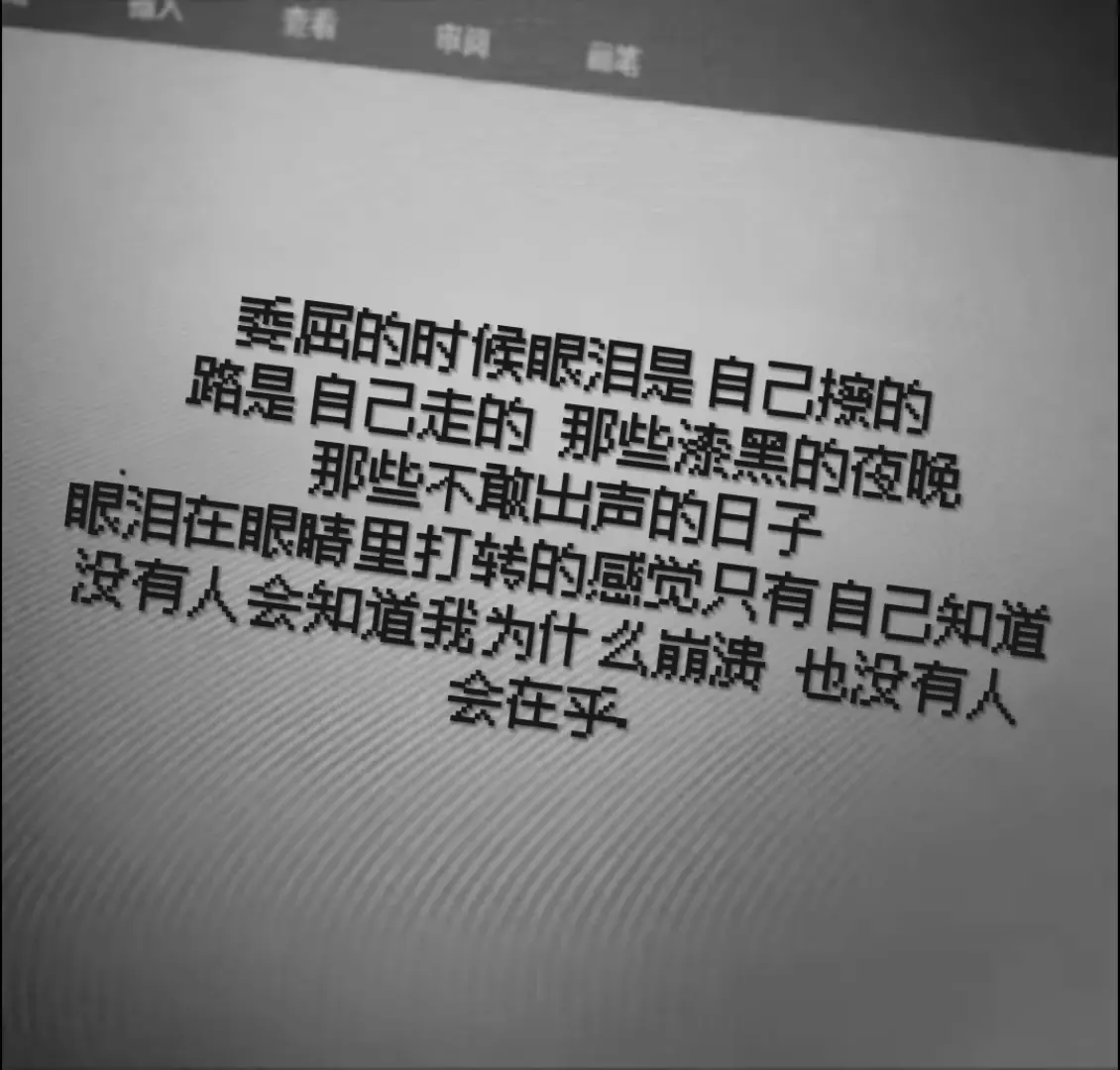 委屈的时候眼泪是自己擦的,路是自己走的那些漆黑的夜晚,那些不敢出声的日子眼泪在眼睛里打转的感觉!