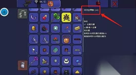 4、天界壳:困难模式石巨人后,收集天界石和月亮贝壳在工匠作坊处合成 5、大力士甲虫:击败世纪之花后且拥有一根侏儒手杖可购买 6、矮人项链:打败世纪之花后,在夜晚可巫医处花20金币购买 7、甲虫莎草纸:由死灵卷轴和大力士甲虫在工匠作坊处合成