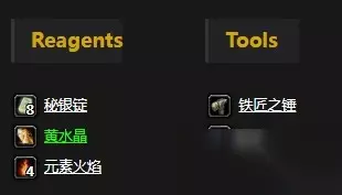 需要工具:铁匠之锤、扳手 需要素材:秘银锭x8、黄水晶x1、元素之火x4 学习等级:工程学205 学习自:在贫瘠之地(62.7,36.3)和塔纳利斯(52.5,27.3)处学习
