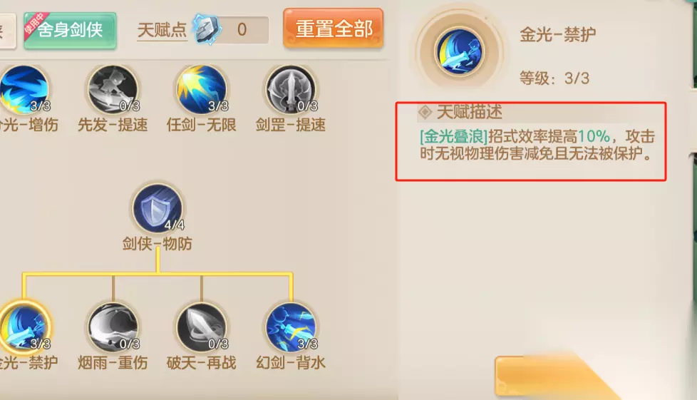 优先选万剑归宗而非三环的原因:未出手前无法确认是否为物理1速,万剑归宗可规避被先手扫击导致放不出技能的风险;且舍身-格挡天赋能大幅提高被扫后仍能出手的概率。