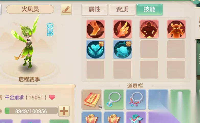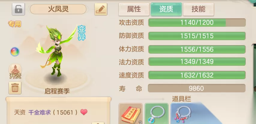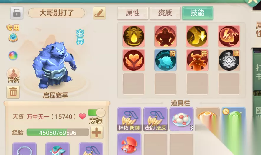卡速宠物配置(优先级排序) 物理卡速:必备,手动加点(优先敏捷,次选体耐),等级满后再加点。需计算阵位速度加成、特殊技能效果,最终速度建议快过对手封系或自身80-100点。推荐55级火凤灵做胚子,打书选高级敏捷、高级隐身、高级强壮、高级法吸(物理卡速可省飞行),低级反震/幸运补位。4技能高资质也可用。 1速卡速:同上,用55级火凤灵打造,确保全场先手辅助。