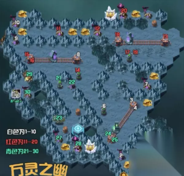 开启条件 玩家通关章节30-60,且奇境漫游中的“万灵之幽”副本进度达到100%即可解锁。 通关路线 按照步骤一步步走即可通关。