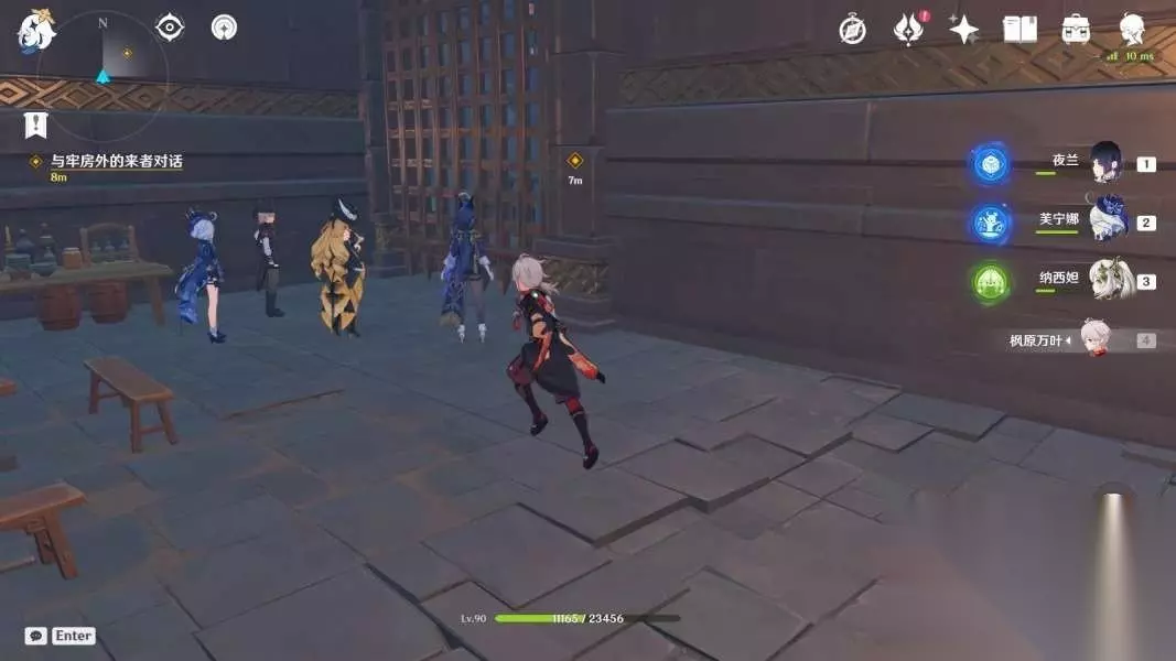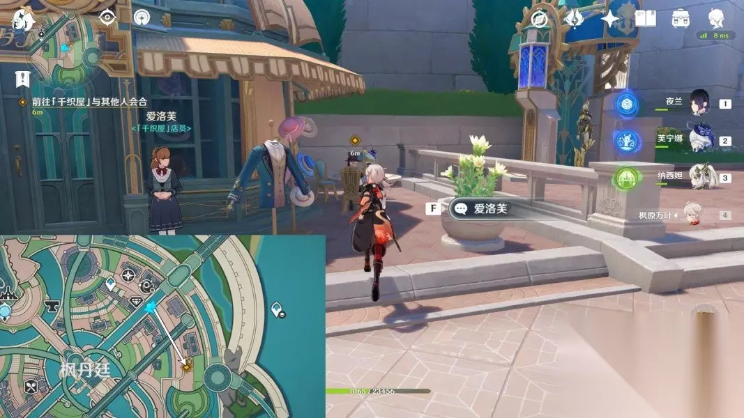 2、前往「千织屋」与其他人会合 往地图上的东南方向走,跟林尼谈谈。