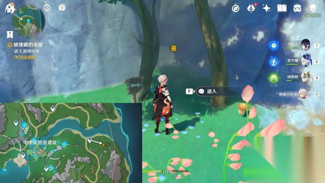 「被埋藏的荣耀」 1、前往游戏场地,与其他人会合 调整游戏时间至第二天早上8-10点。 传送枫丹动能工程科学研究院区东方向锚点。 进入游戏场地之后,与克洛琳德对话5分钟。