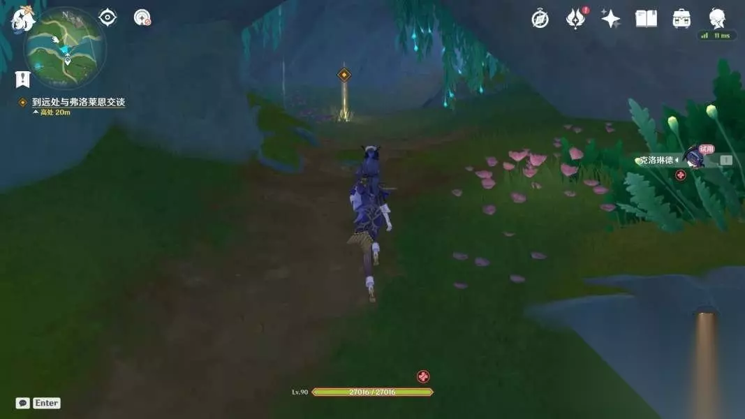 《原神》4.7克洛琳德传说任务迅捷剑之章图文攻略 「审判之时」 1、与克洛琳德和娜维娅对话 传送方丹丁北部的锚点,在地图上向东南方向移动,和克洛琳德对话。