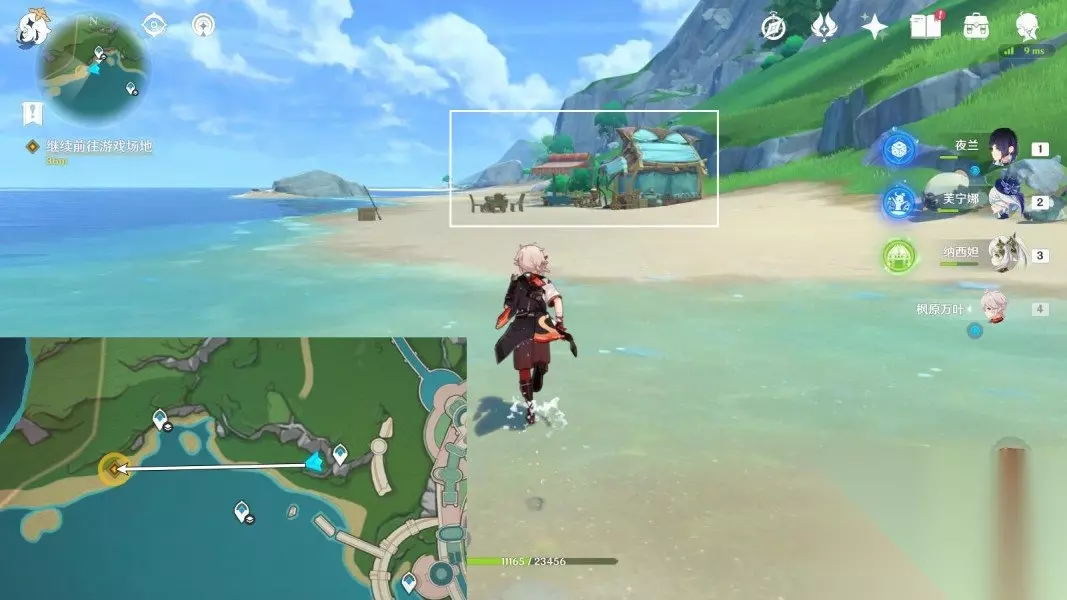 2、继续前往游戏场地 在地图上向西走到比赛区域,前往游戏场地。