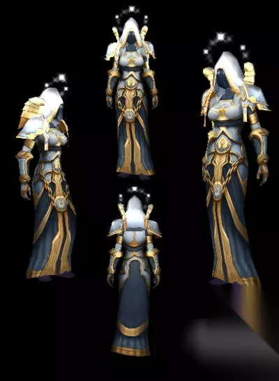 牧师T3:信仰套装 游戏中没有任何一个套装能像信仰套装这样让人感觉平和和正义。虽然玩家已经听烂了关于牧师T3那个悬浮在头顶上方的天使光环的赞美,但我还是要说,这个光环外加肩膀上纯白色的翅膀将整套套装的造型提升到了新的高度。