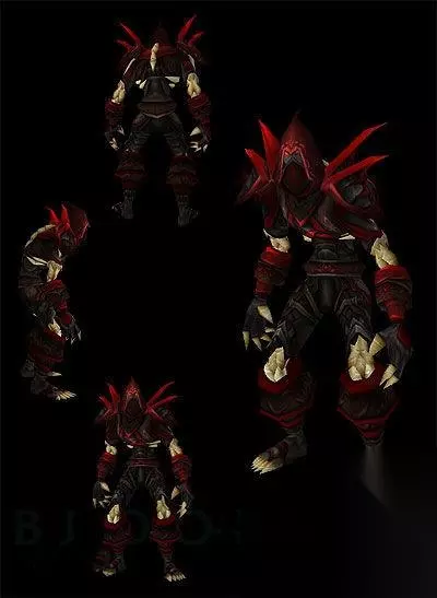 血牙-盗贼职业套装,分头,肩,胸,腕,手,腰,腿,靴八件。也可简称为T2,为盗贼们所认同的最经典的套装。