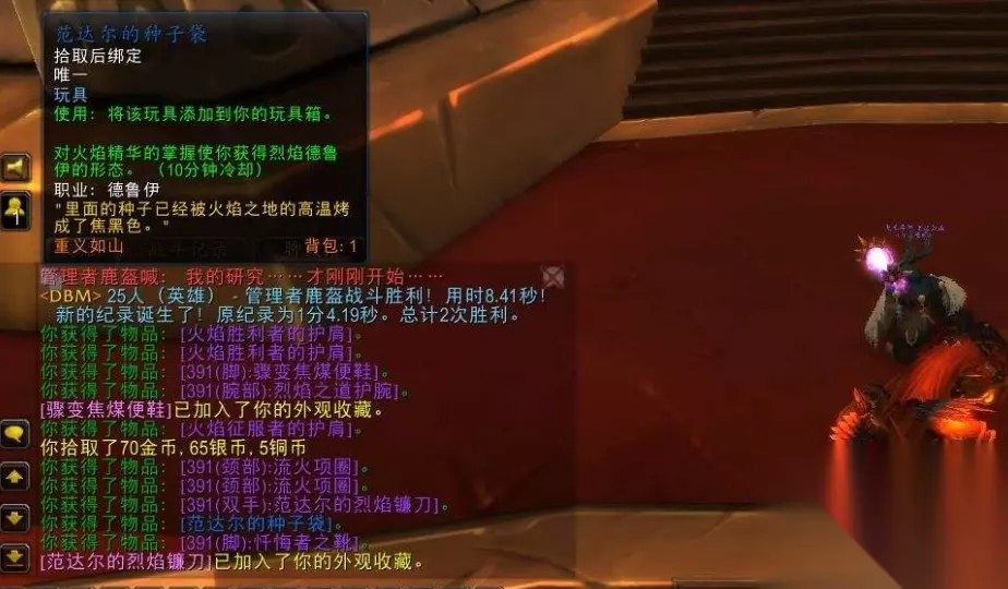 还有个不算幻化装备类,是个玩具,由大裂变的团本,【火焰之地】中的BOSS[管理者鹿盔]掉落-【范达尔的种子袋】,只有德鲁伊去刷,才会掉落哦!
