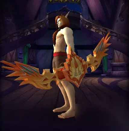 【凤凰之日怒长弓】-卡拉赞最终BOSS马克扎尔王子掉落,造型上无疑比天火鹰弓更大一截,有着一对更大的翅膀,射箭姿势非常好看,只是纯黄色略逊于天火鹰弓的火黄色。