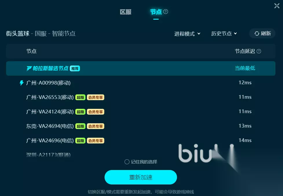以上就是关于“街头篮球加速器哪个好用”的全部介绍,别犹豫了,赶紧试试具有电竞级专线的biubiu加速器。相信在它的强力加持下,你可在赛场上肆意挥洒汗水,尽情享受热血沸腾的竞技乐趣。