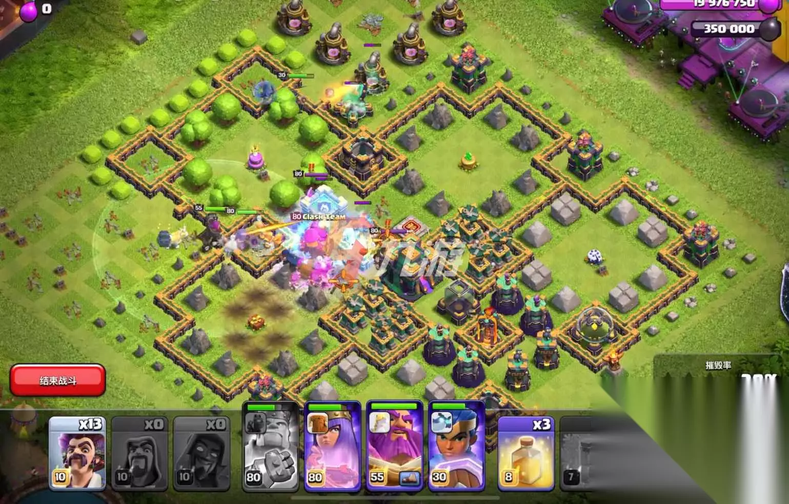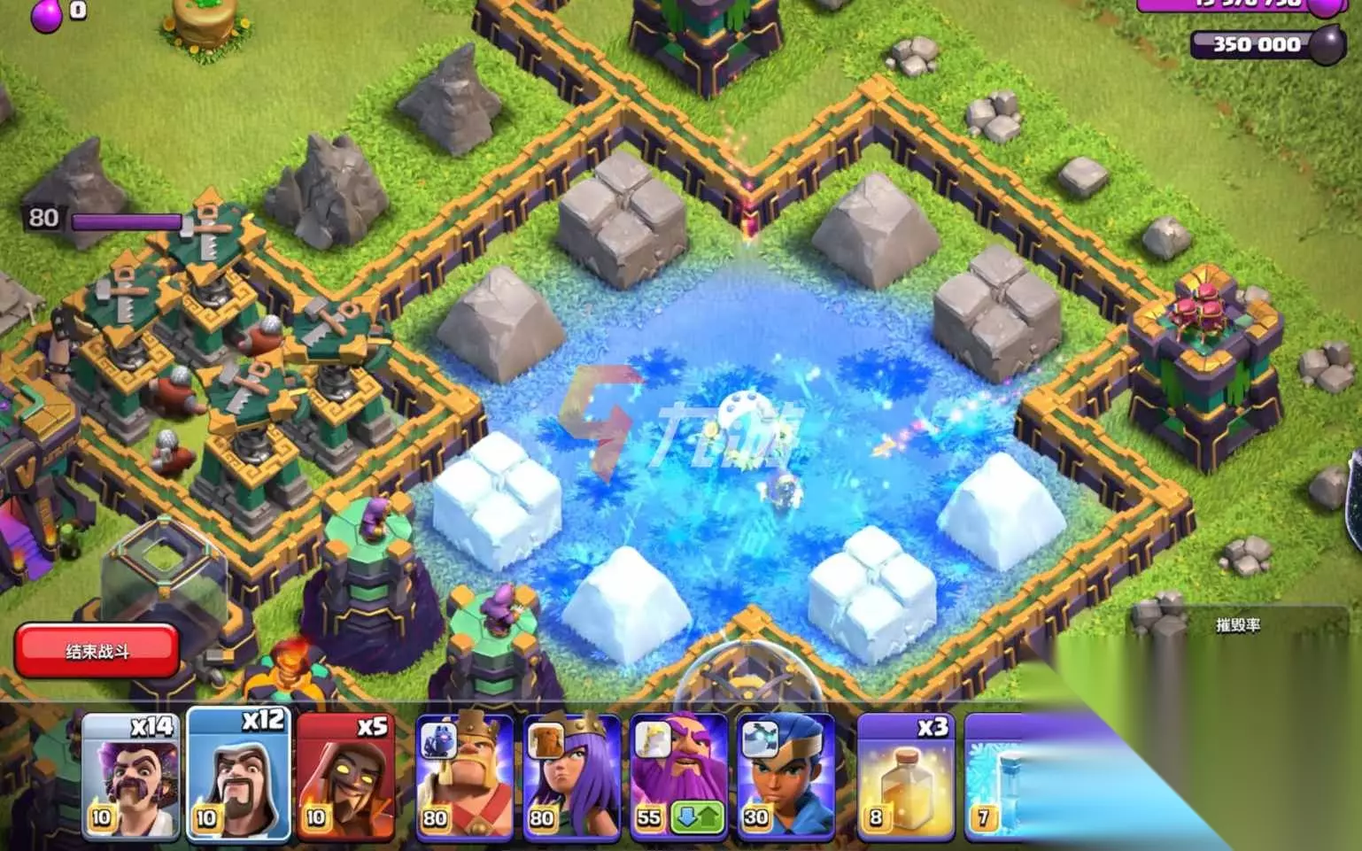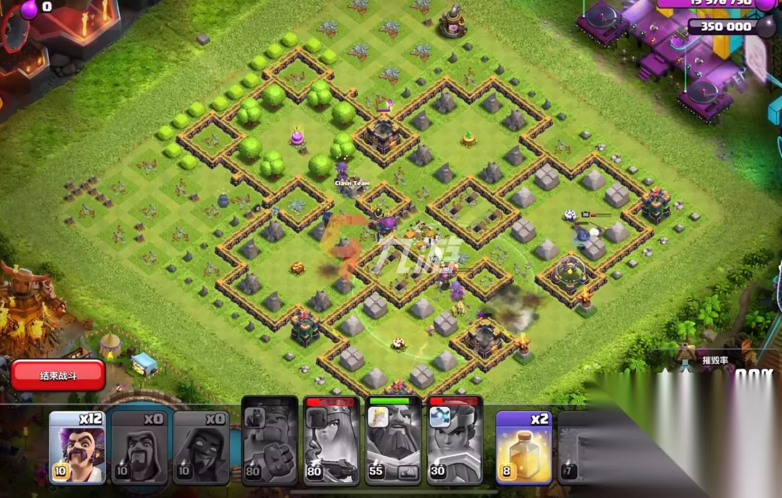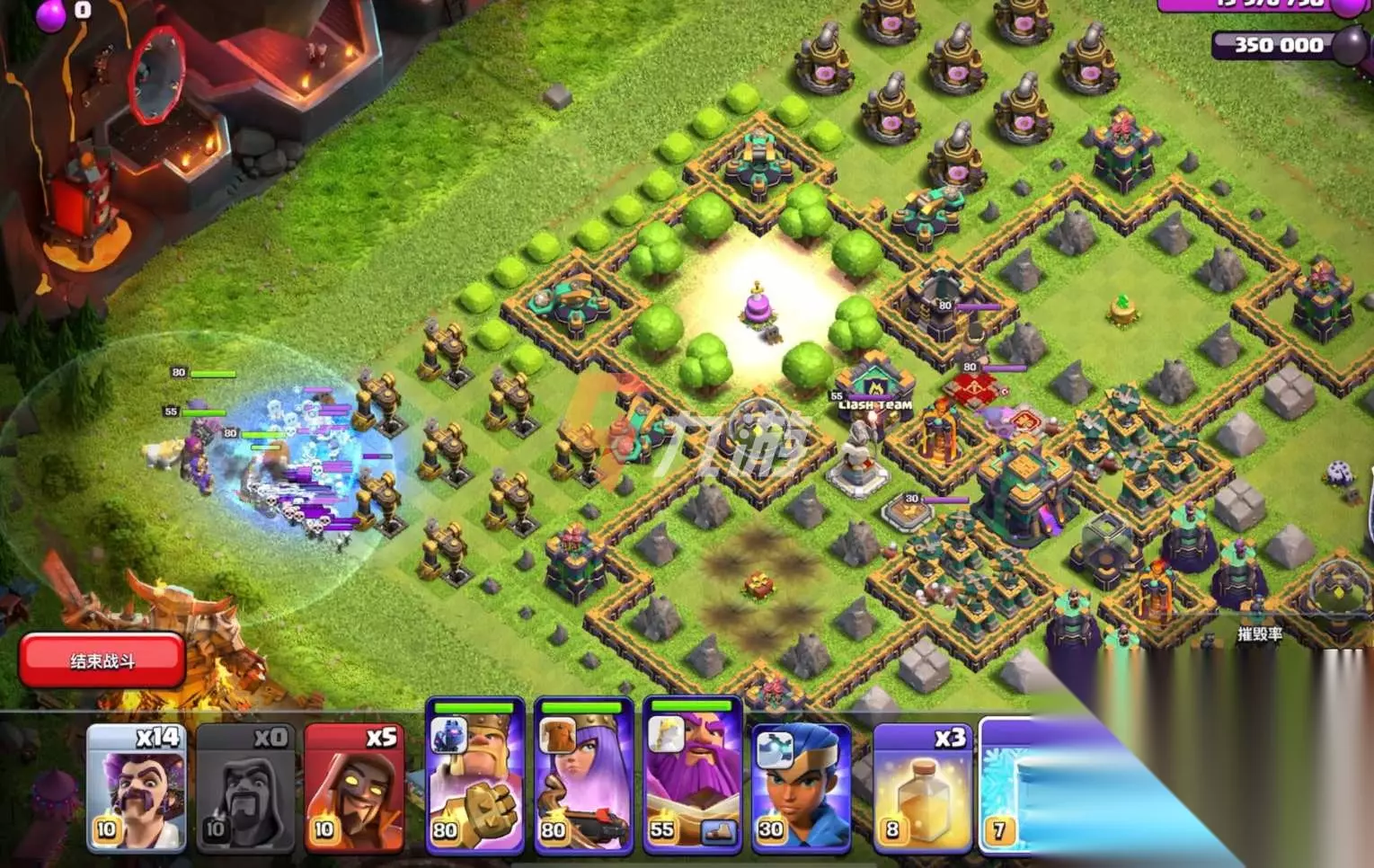 【第四步】:第四步等打到对面的下面的防御塔时,我们派出剩下的法师直接进行集火攻击,就可以直接通关了。 以上就是本期部落冲突9周年生日挑战的攻略,希望可以帮助到大家。