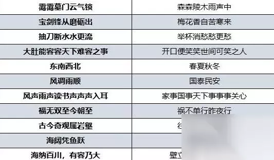 《大侠立志传》太学馆院长对联答案大全 上联:霭霭墓门云气锁 下联:森森陵木雨声中 上联:宝剑锋从磨砺出 下联:梅花香自苦寒来 上联:抽刀断水水更流 下联:举杯消愁愁更愁 上联:大肚能容容天下难容之事 下联:开口便笑笑世间可笑之人 上联:东南西北 下联:春夏秋冬 上联:风调雨顺 下联:国泰民安 上联:风声雨声读书声声声入耳 下联:家事国事天下事事事关心 上联:福无双至今朝至 下联:祸不单行昨夜行 上联:古今奇观属岩壑 下联:往来名士尽风流 上联:海阔凭鱼跃 下联:天高任鸟飞 上联:海纳百川,有容乃大 下联:壁立千仞,无欲则刚