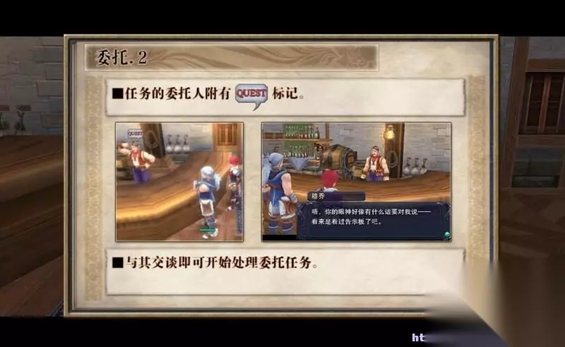 最后,委托任务并不是你看了告示板就接受了。 你需要根据任务描述到相应的地方找到委托人开始任务。 委托人的都上会有如图的QUEST红色字样,容易找到。