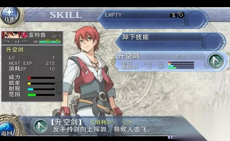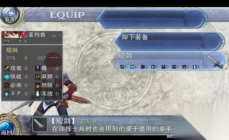 通过购买、任务获取或者进化尽可能的提升装备水平。 这里需要指出的是,武器的基础伤害由力量STR决定。 然后会有各种附加效果,数值当然越大越好。 不过伊苏系列可以选择的装备道具一向不多,这个也不是重点,玩家循序渐进按部就班升级装备就行。
