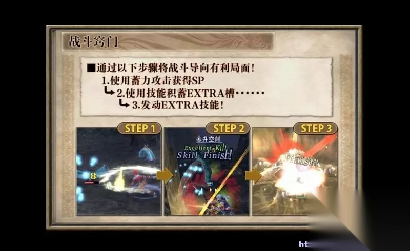 整个战斗步骤可以归纳如下。 首先用蓄力攻击获得sp。 然后消耗sp使用技能积累extra。 最后发动大招清屏。
