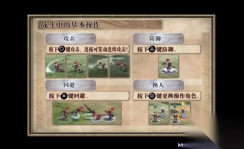 战斗中圆键负责攻击,连按则连击。 角键防御,叉键回避,方键换人操作。
