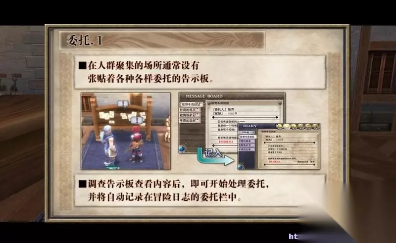 回到城镇后,玩家可以继续触发相应的主线任务。 还能到酒馆告示板去查看委托任务。