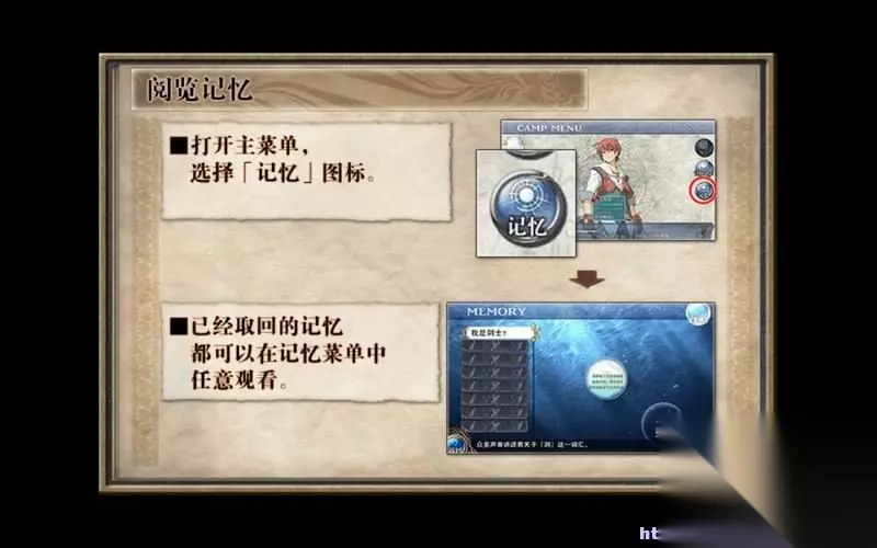 玩家可以通过主菜单的记忆项目查看重拾的记忆。