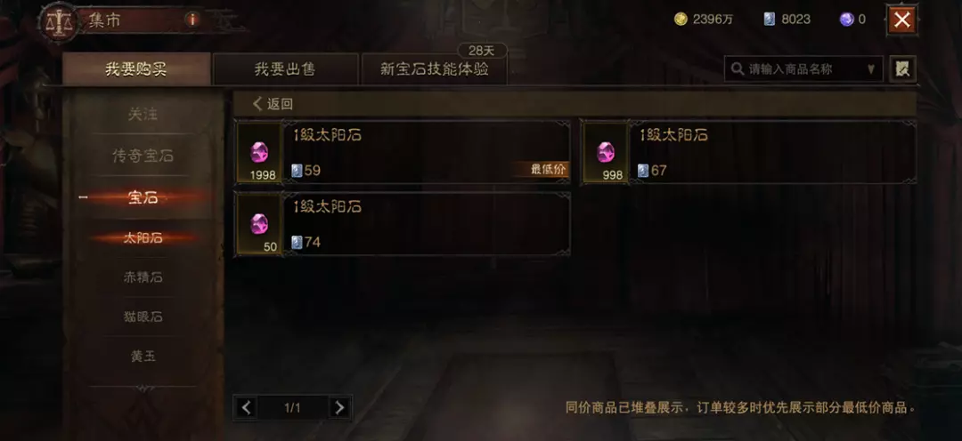 为方便玩家快速了解商品价格和数量信息,集市中同价的普通宝石、符文、恐惧魔息将会合并显示,一个价格的同类道具只占用一个栏位。商品订单较多时,将优先堆叠部分最低价的商品,且最早上架的订单将优先被售出。