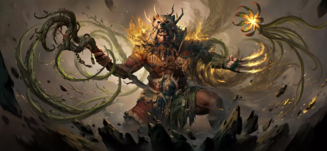 一位掌握自然之力的荒野英雄。他们能化身巨熊挥动千斤之力,亦或是化身恶狼撕碎眼前一切,又或是遁形灵鹿轻灵一跃,他们是林地的守护者,亦是自然荒蛮力量的具象化。