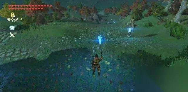 在传送到海拉尔王城之前,打开“感知”系统,找到并杀死远古生物