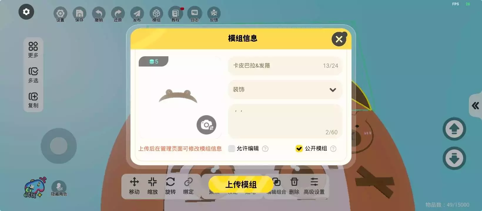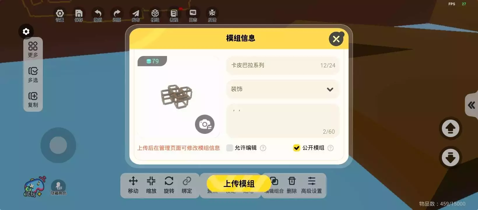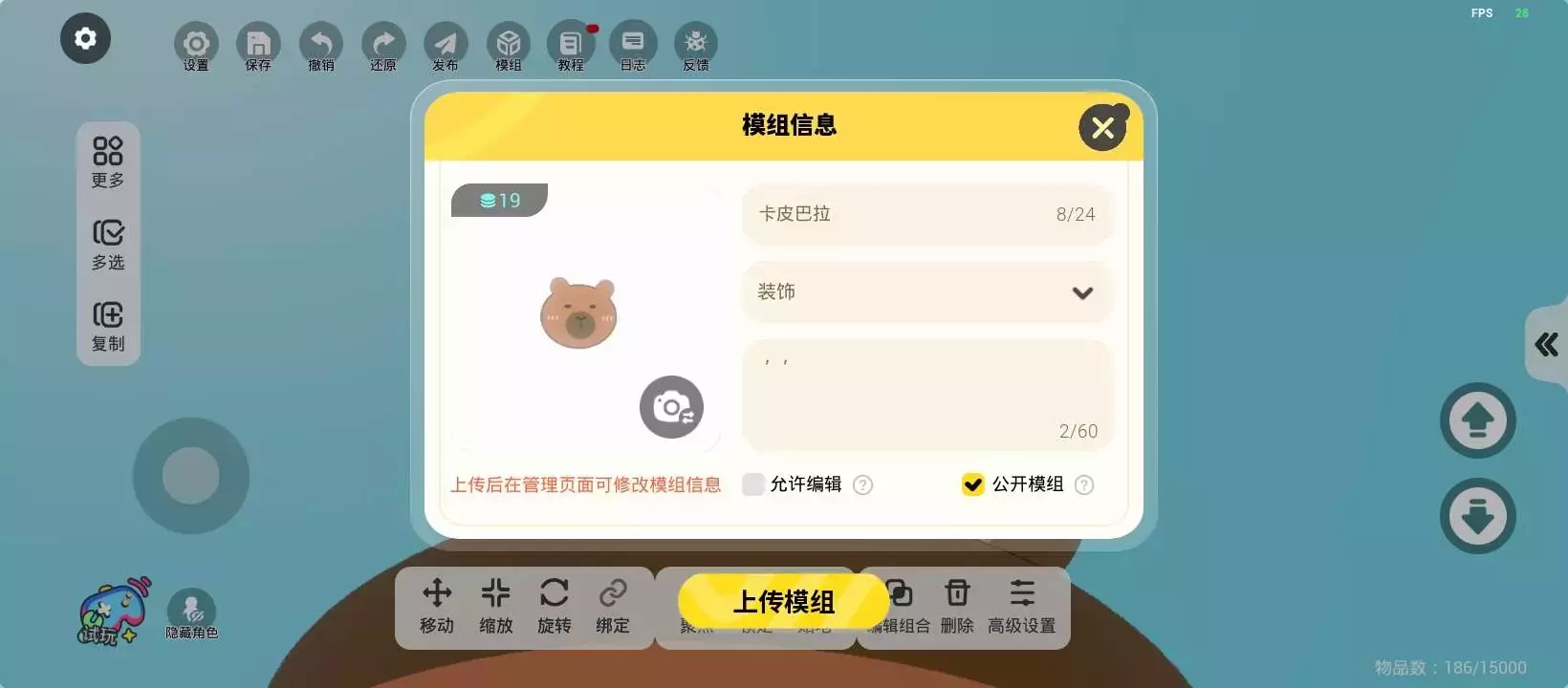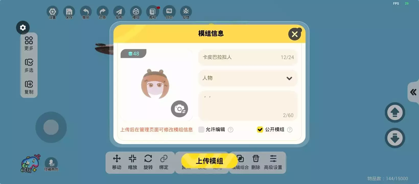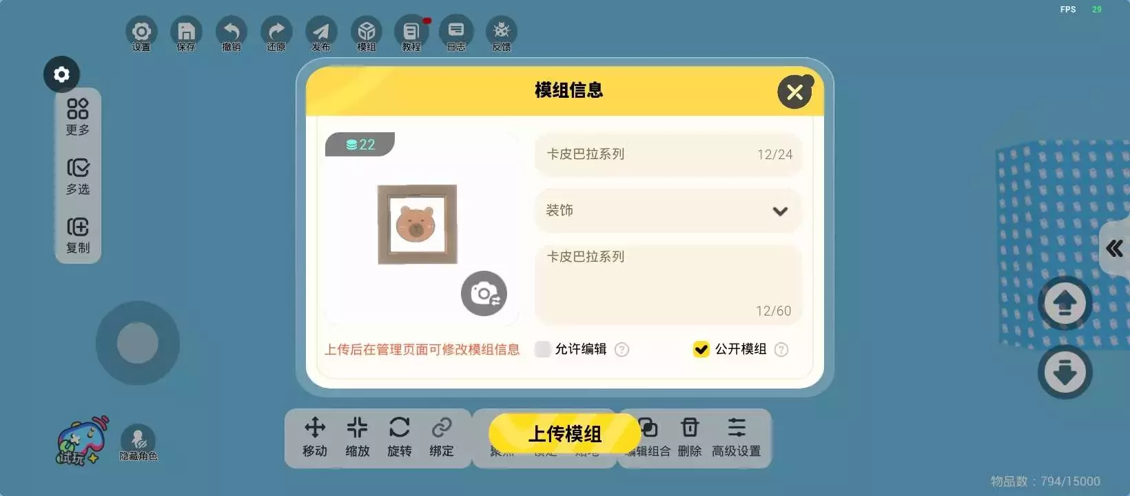 共23关,共用4374个物品,二段跳,新手可食用🌷最后一关是空气墙,可以直接过去哦~关卡包含了很多卡皮巴拉。人物做的可能不是很好看,尽量尝试吧!提前种草一下,暑假可能会做一两张拟人地图。