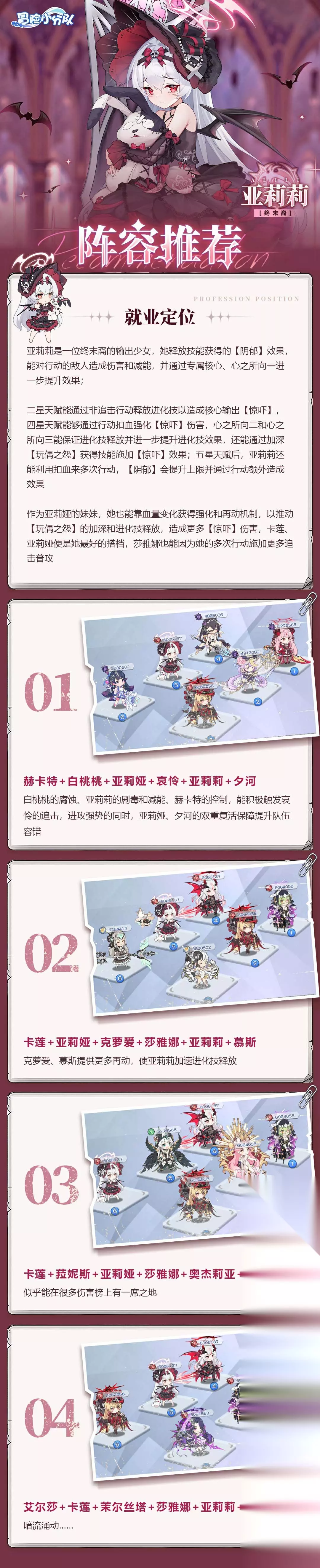 【亚莉莉阵容推荐】限时礼包码: 不许伤害亚莉莉 钻石*200,装备设计图*50,金币*50000 请在2025年8月31日前使用 领取方式: 复制礼包码>游戏内点击头像>玩家信息界面右下方:礼品码>输入礼包码