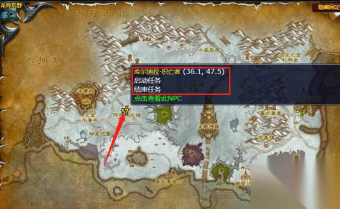 游戏中的NPC库尔迪拉·织亡者的具体位置就是在为(36.7-47.5),在地图中会显示感叹号,该位置就是NPC库尔迪拉·织亡者的地点