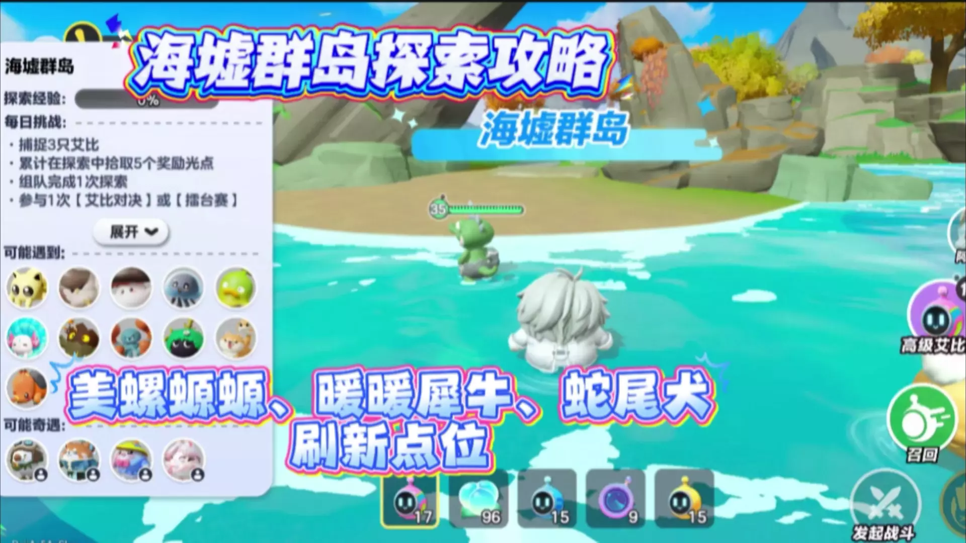 海墟群岛探索攻略:美螺螈螈、暖暖犀牛、蛇尾犬刷新点位#王牌达人营