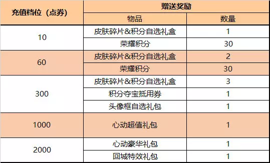 皮肤碎片&积分自选礼盒:打开礼包可任意选择以下奖励之一:荣耀积分*10或皮肤碎片*1