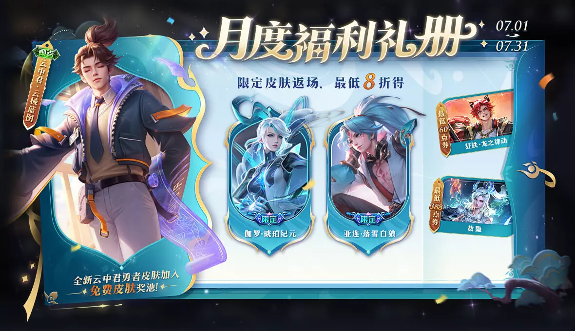 新一期月度福利礼册的免费皮肤奖池,加入了全新皮肤云中君-云械蓝图;
