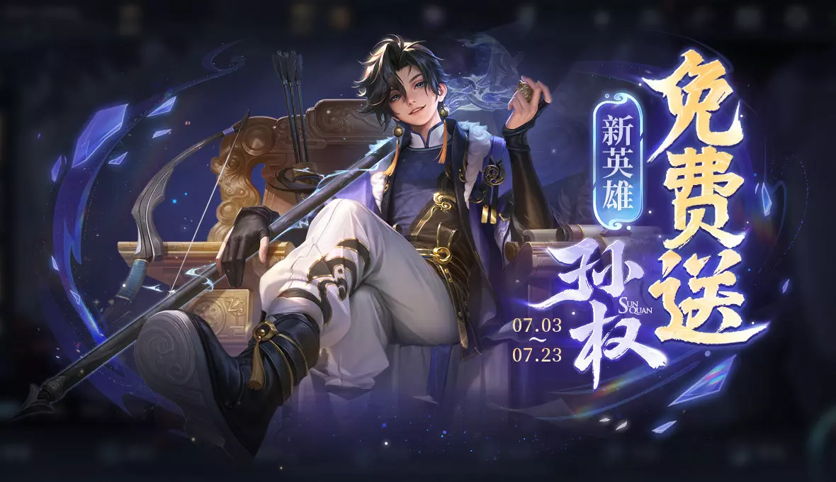 7月3日版本更新后至7月4日23:59期间,玩家可在排位以外的模式中免费试用孙权参与对局。