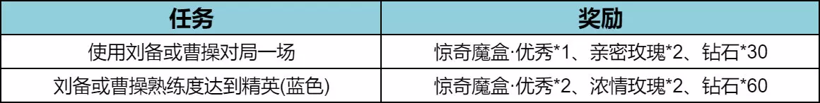 前往英雄试炼活动(活动页面可切换参与刘备和曹操的对战任务),活动期间免费试用刘备、曹操英雄及精选皮肤,完成任务还可领取奖励。